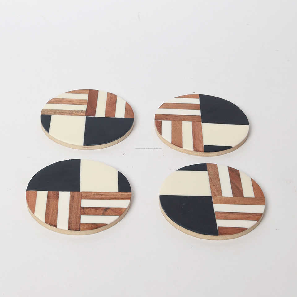 Ensemble de sous-verres en résine en bois fait à la main exclusif rond et carré sous-verre à thé tasse tapis porte-boisson Table à manger maison cuisine décor
