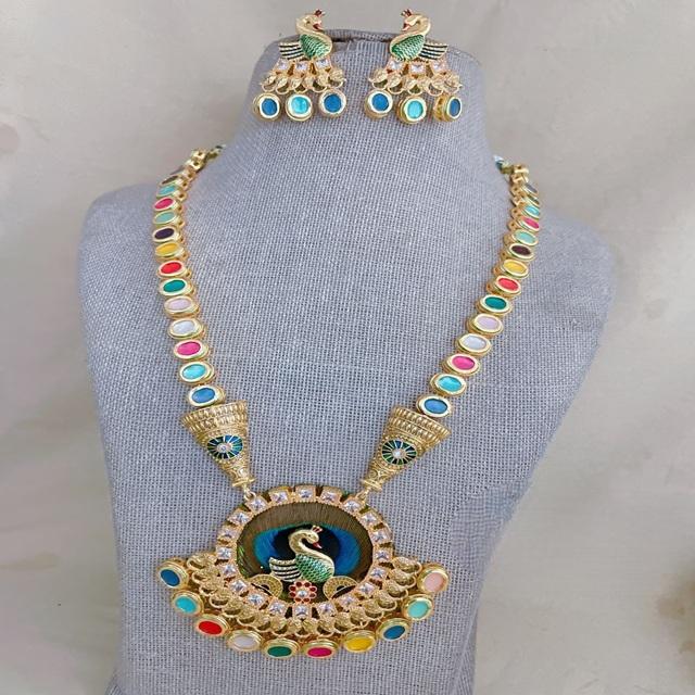 Ensemble de colliers exclusifs de haute qualité en plaqué or avec pierres Boucles d'oreilles pour femmes Bijoux de créateurs pour mariage et fête
