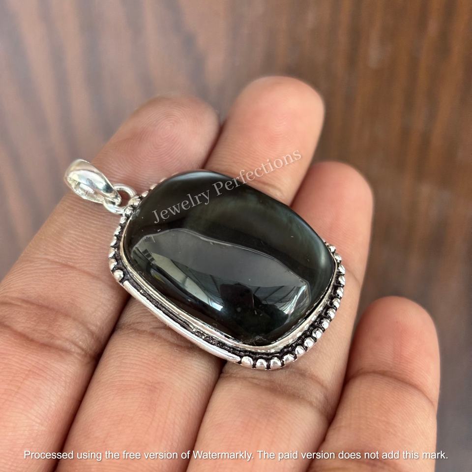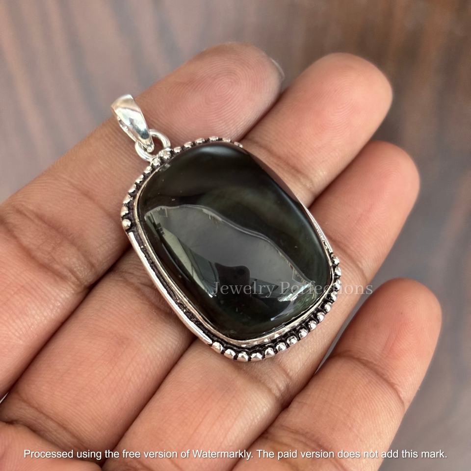 Pendentif en obsidienne argentée naturelle en vente flash exclusive, charme en argent sterling 925, collier pour femmes, accessoires de mode