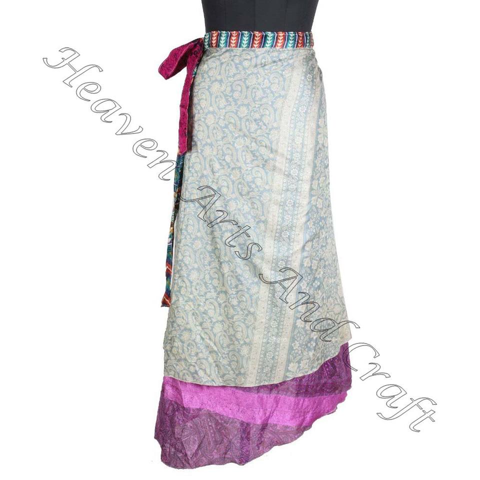 Jupe portefeuille magique en soie réversible indienne exclusive Jupes enveloppantes magiques en soie Grossiste Couvre-chef Vêtements Vintage Magic