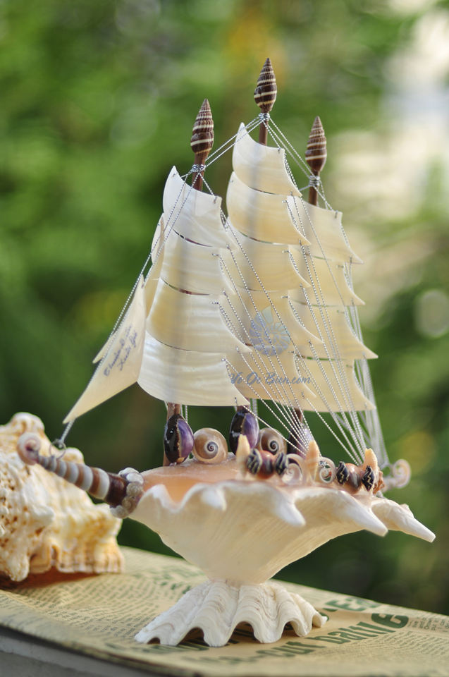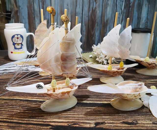 Modèle de bateau coquillage en quantité limitée exclusif Ornements artisanaux en coquillage précieux de la nature fabriqués au Vietnam