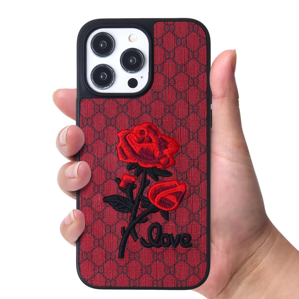 Étui de téléphone portable personnalisé de luxe exclusif avec design de broderie à double injection et support magnétique pour anneau