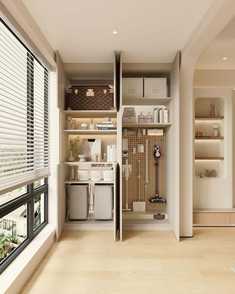 Exclusive Luxury Wooden Plank Industrial Custom Integral Laundry Cabinet Balcony Cabinet