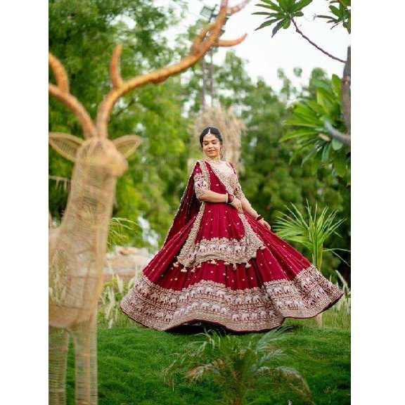 Exclusive Maroon Bridal Lehenga Choli with Heavy Embroidery Thread Sequin Detailing and Latkan Dupatta for Wedding Ceremonies