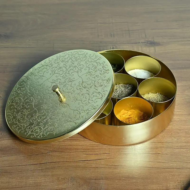 Boîte à épices métallique exclusive avec couvercle décoratif – Rangement de cuisine pour masala, herbes et assaisonnements
