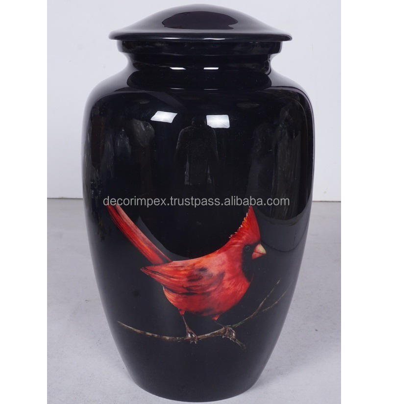 Urnes funéraires modernes exclusives en métal rouge Cardinal faites à la main pour les cendres humaines Urne commémorative décorative