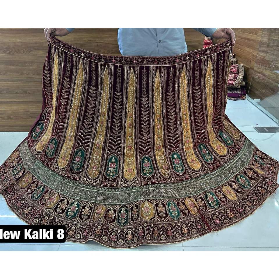 11000 VELVET LEHENGA HEAVY JARKAN WORK CUT PASTE WORK