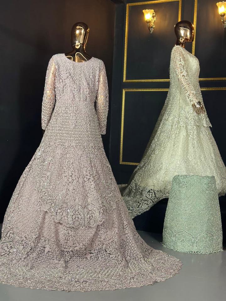 Filet exclusif Lehenga Choli avec finition Taaj élégante et grande piste lourde et détails complets en pierre de Jarkan fabriqués à la main
