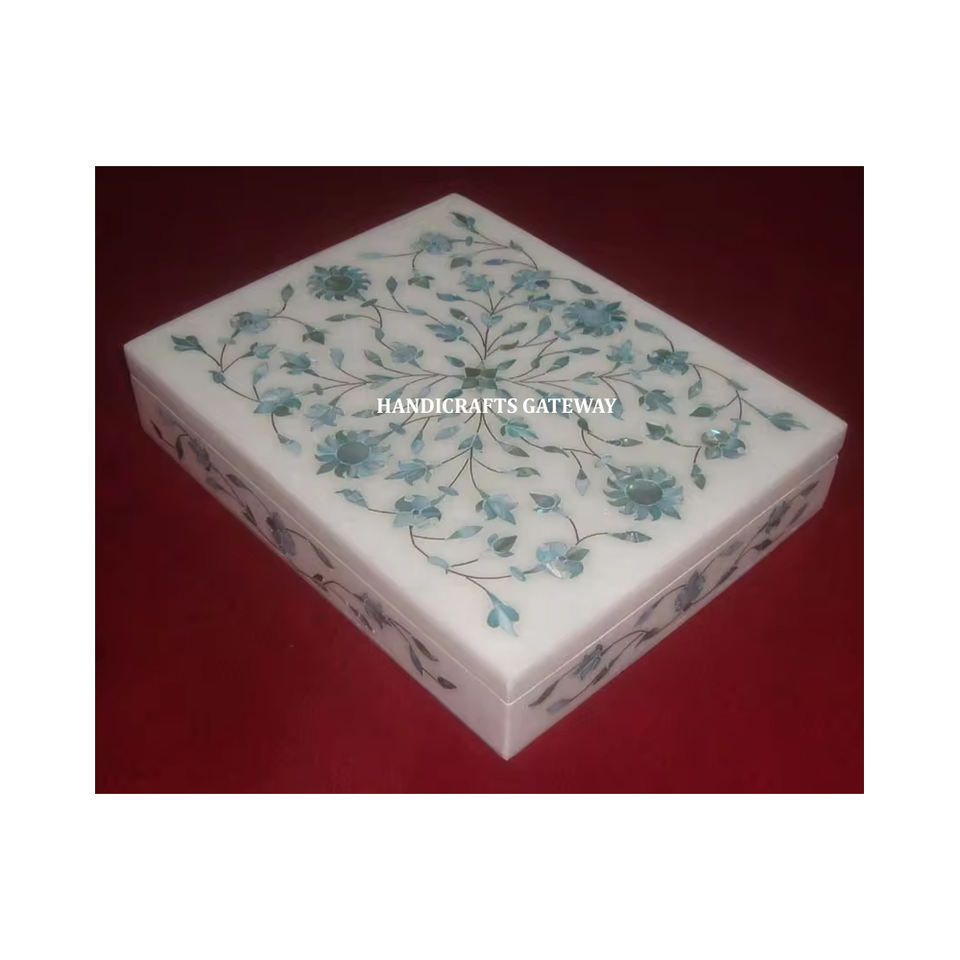Boîte à bijoux en marbre vert nacré, design exclusif, pour la décoration de la maison, avec une finition brillante