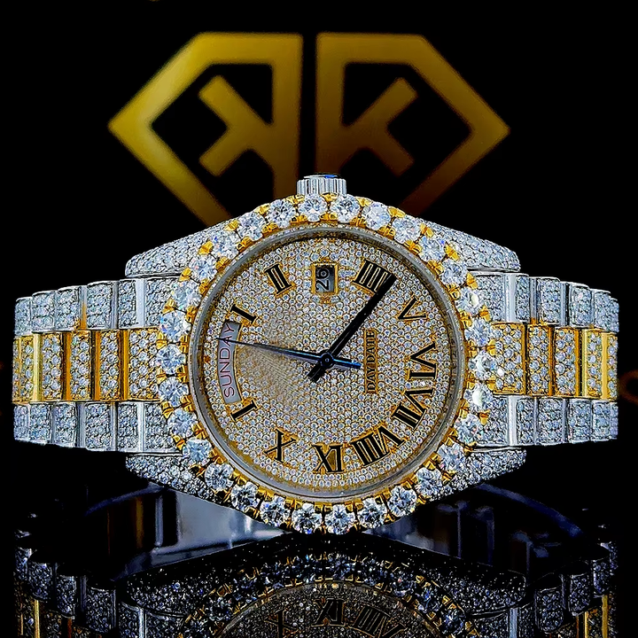 Montre exclusive nouvelle génération de luxe à quartz automatique analogique VVS en acier inoxydable avec mouvement rond en moissanite diamant résistante à l'eau