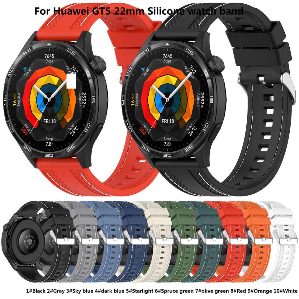 Offre exclusive Bracelet de montre en caoutchouc de silicone de suture de voiture de 22mm pour Huawei Watch GT5 4 2se