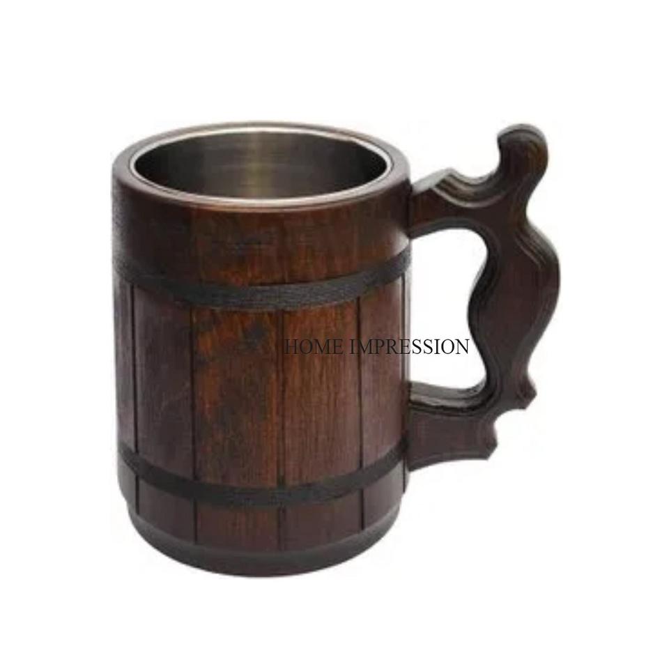 Tasse à vin en bois faite à la main créative de qualité exclusive tasse à bière en bois naturel avec poignée à l'intérieur de l'acier pour l'approvisionnement en gros