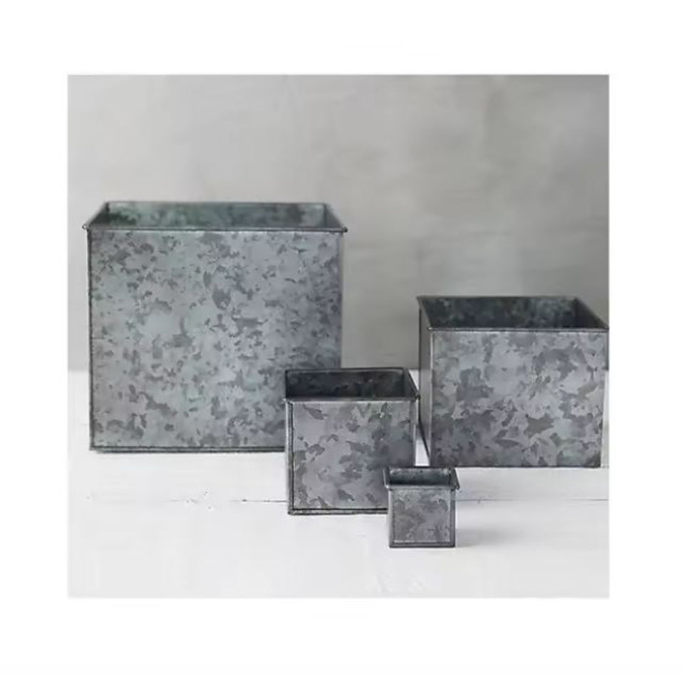 Jardinières galvanisées de qualité exclusive Pot de fleur Design attrayant Pots de plantes Ensemble porte-plantes pour la maison Organisateur de jardin