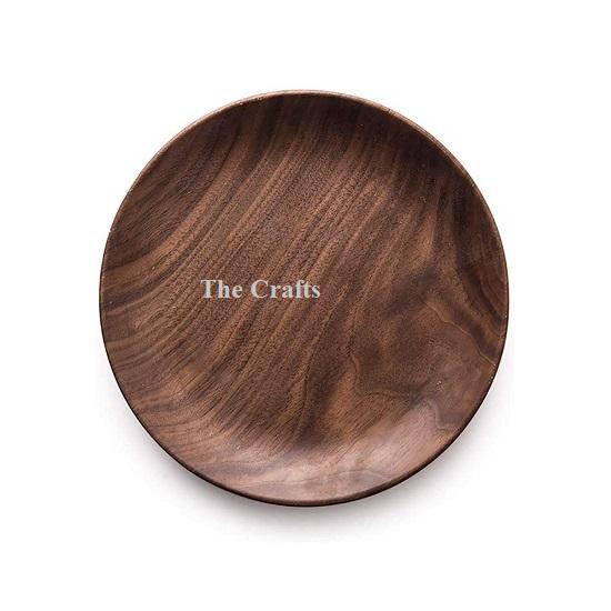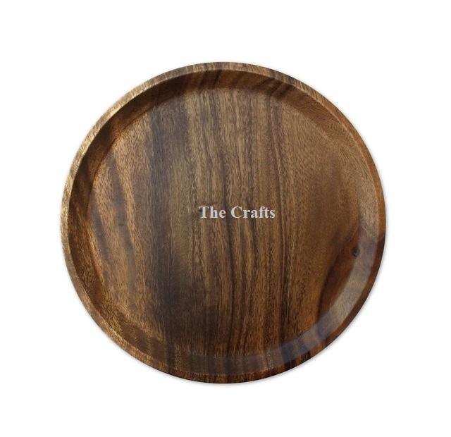 Assiette de présentation en bois de couleur marron avec une forme ronde de qualité supérieure sous l'assiette de présentation pour les accessoires de cuisine