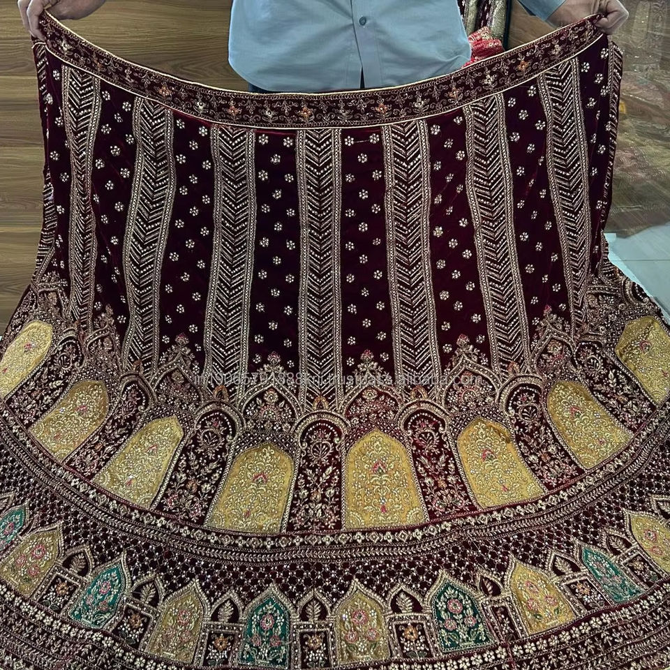 TRAVAIL:11000 VELOURS LEHENGA LOURD JARKAN TRAVAIL COUPE PÂTE TRAVAIL