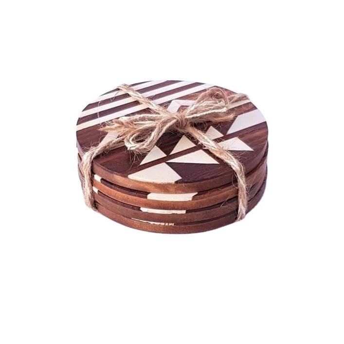 Ensemble de sous-verres classiques en bois et résine, faits à la main, écologiques, avec design incrusté, personnalisables, de qualité supérieure, élégants pour salles à manger