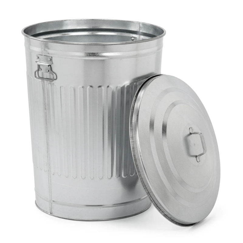 Poubelle exclusive ronde en fer galvanisé pour la maison, le jardin, l'intérieur et l'extérieur, poubelle décorative, couleur personnalisée.