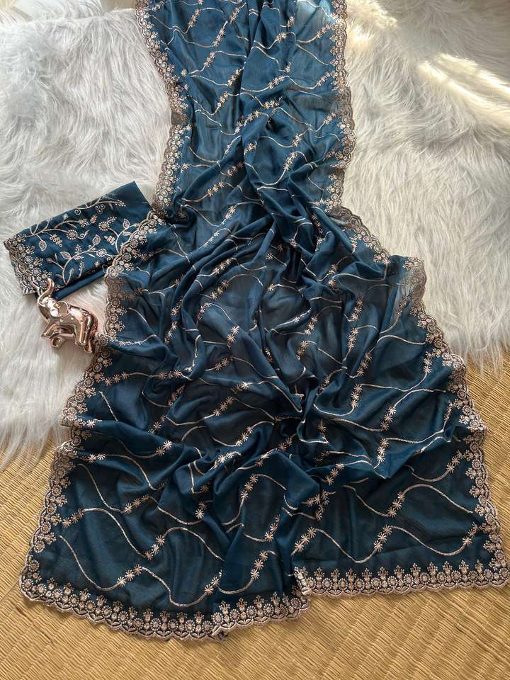 Sari en Georgette de Soie Exclusif avec Broderie, Tenue Traditionnelle de Soirée pour Femmes, Fabricant et Fournisseur de Surat, Prix de Gros