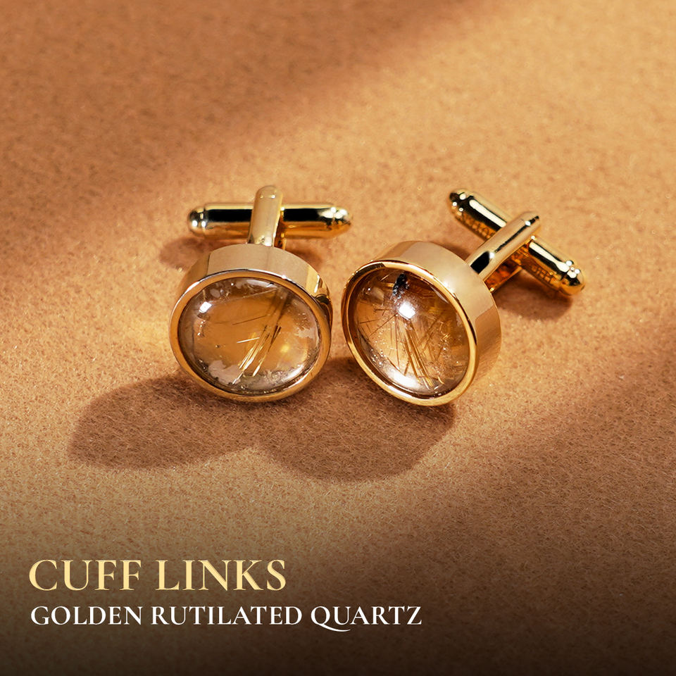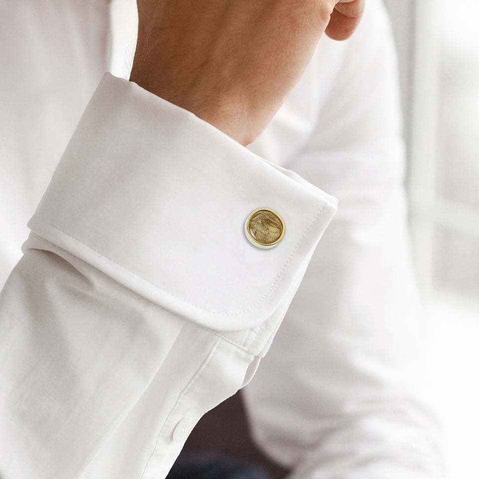 [Exclusif] Boutons de manchette en quartz rutilé doré « Fil de la Fortune » - Bijoux pour hommes plaqués or 18 carats | Collection Tinh Vu