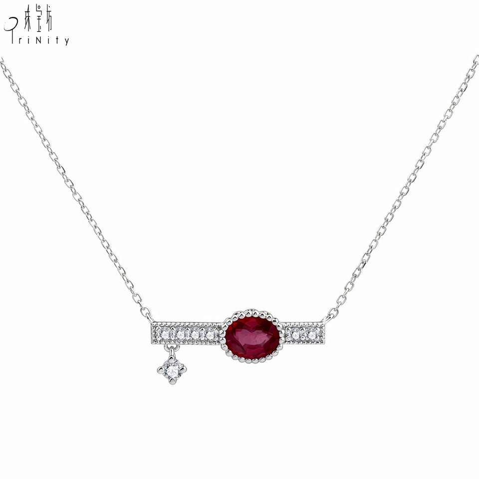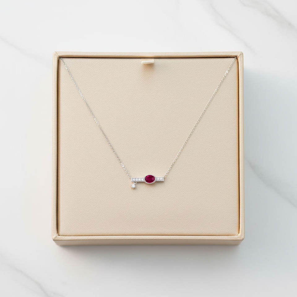 Collier pendentif en or blanc massif 18 carats avec rubis rouge vif naturel et diamants, design exclusif et tendance, pour femme, à porter au quotidien.