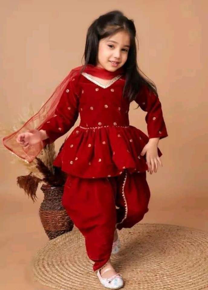 Nom du produit:En Velours Exclusif Avec Des Paillettes Travail Enfants Kurti Pant Et Dupatta