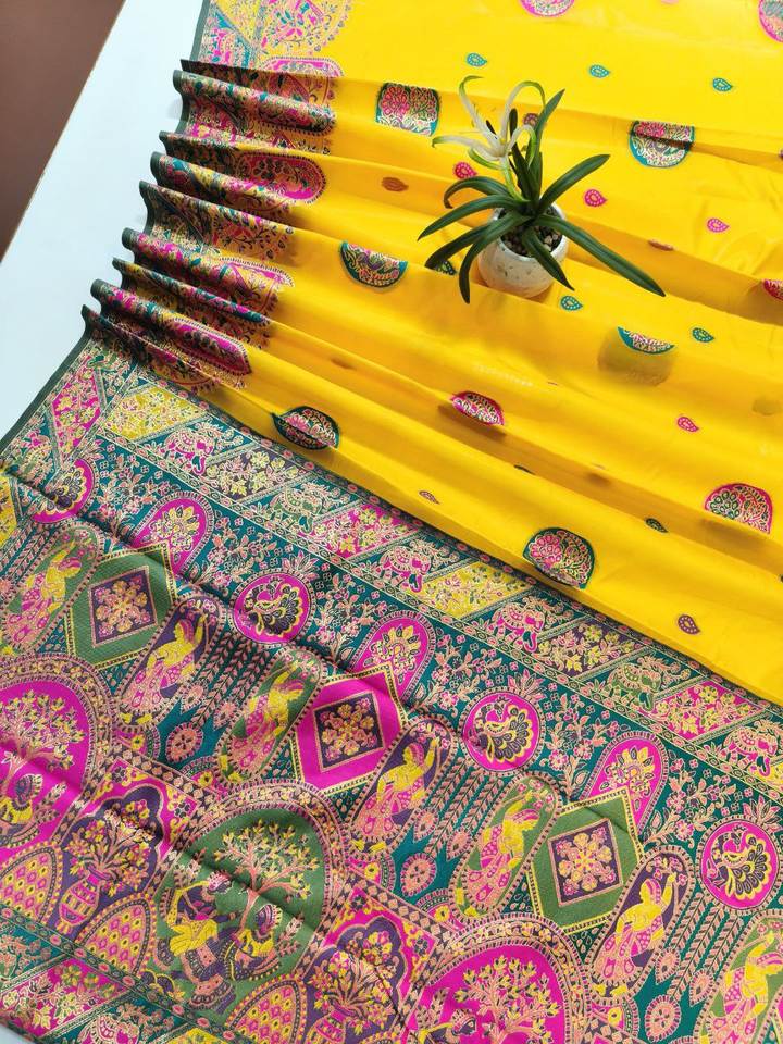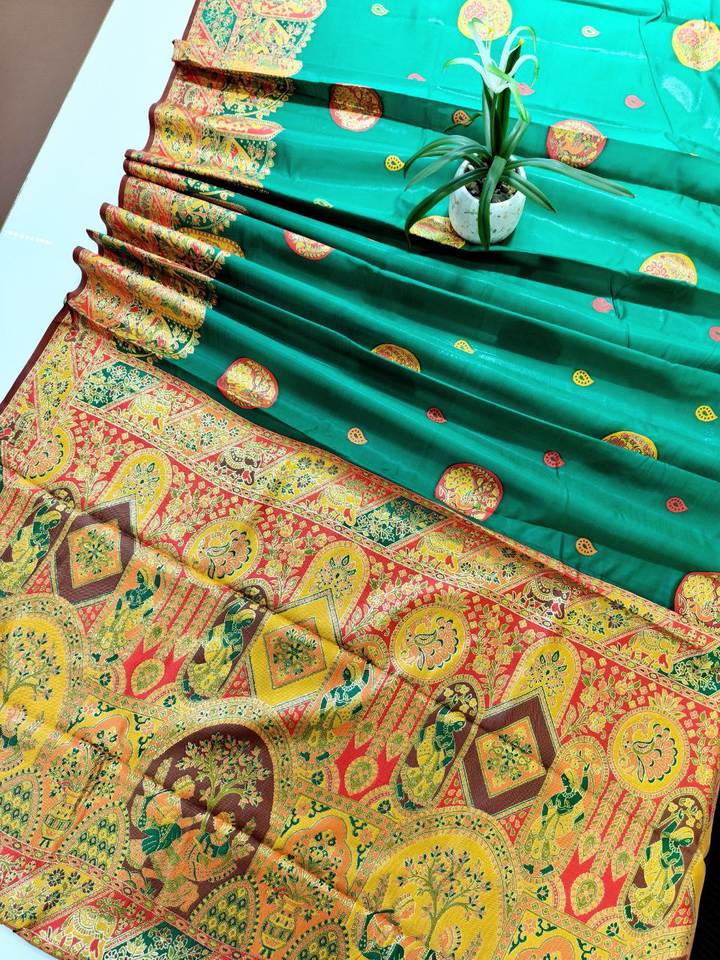 Product Name:Banarasi Silk With Figure Weaving And Meena Weaving Border Work Saree