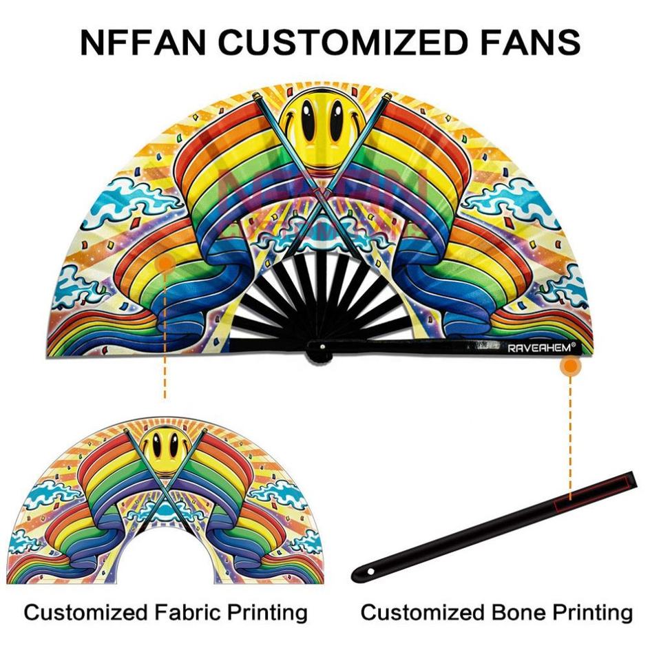 Ventilateurs à main pliants Clack Rave de décoration exclusive en gros avec festivals d'impression personnalisés et événement EDM