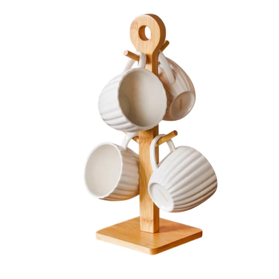 Support mural exclusif en bois à 6 crochets pour tasses – Organisateur de comptoir de cuisine pour tasses à café et à thé – Présentoir durable et peu encombrant pour tasses