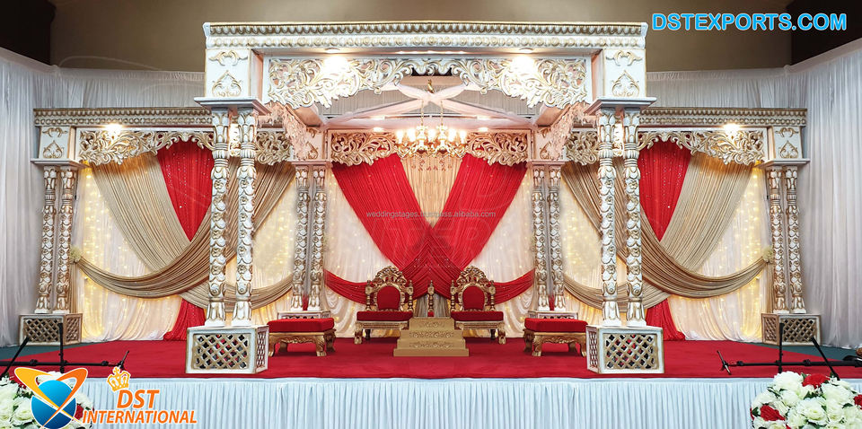 Mariage en bois exclusif Mandaps Design couronne royale en bois mariage Mandap Set magnifique palais blanc mariage en bois Mandap USA