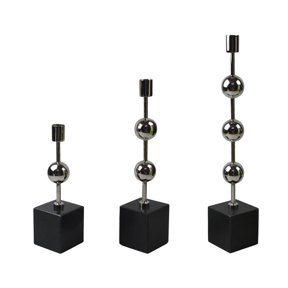 Ensemble de trois bougeoirs en métal massif, design exclusif et décoratif, idéal pour la table.