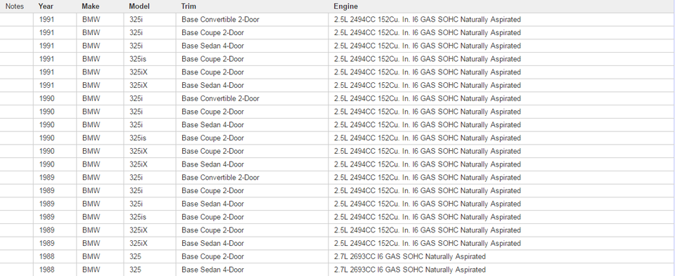 Car Make:88-93 BMW E30 320I 323I 325I 325IX