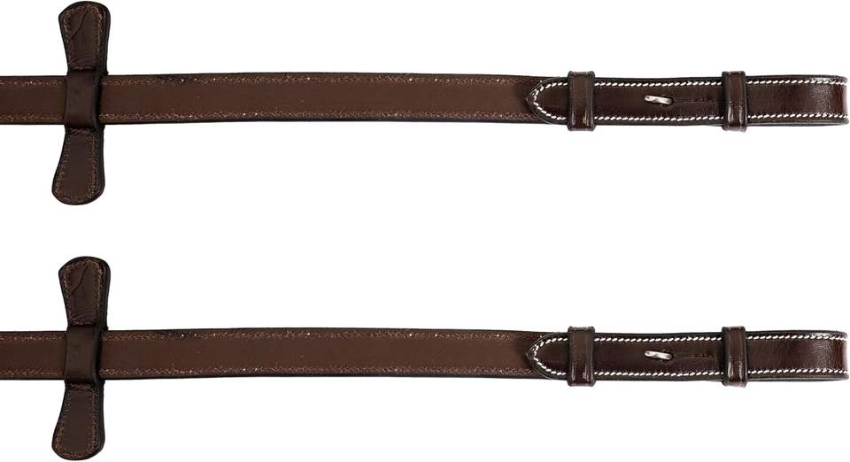 Exion Double Laced Leather Horse Reins (16mm) English Riding Reins with CrissCross Grip Veg Dressage & Jumping