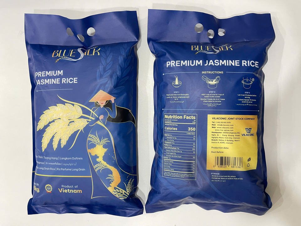 Emballage neuf de marque exclusive de l'usine de riz Vilaconic Riz au jasmin 5KG 10KG Sac affiché par M. Brian