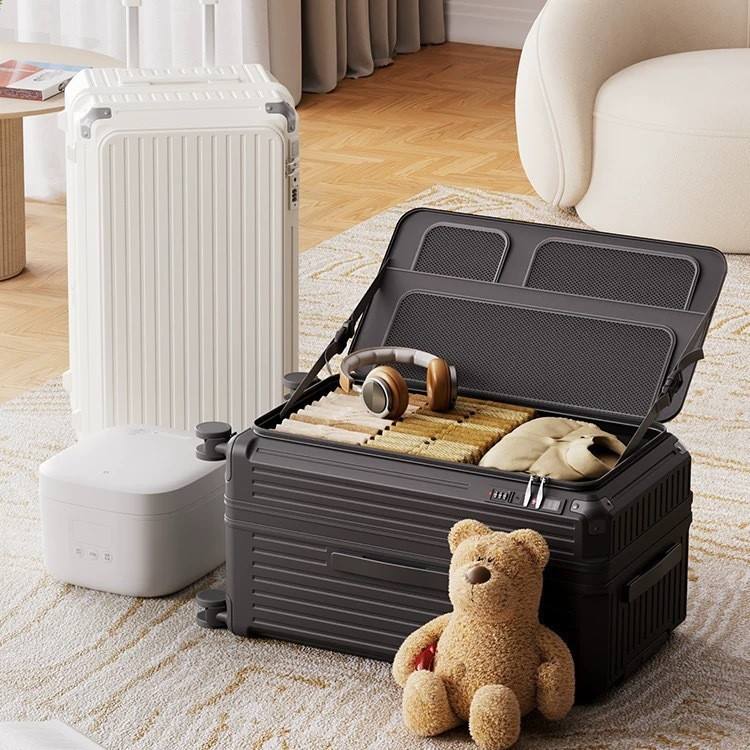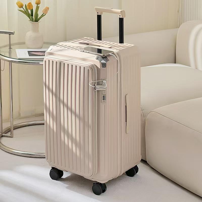 Expandable 28-Inch Trolley Suitcase With Zipper And Combination Lock For Men's Leisure Travel 360 Degree Spinner Wheel Stripe