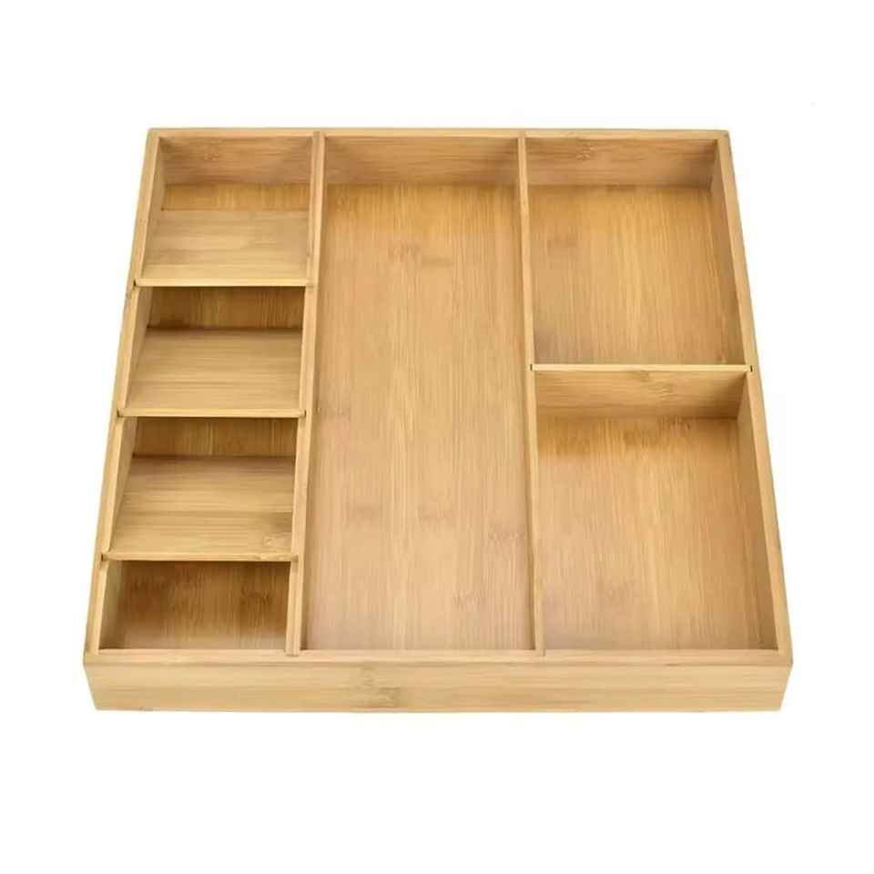 Organisateur de tiroir extensible en bambou, plateau à couverts de cuisine réglable, séparateur de rangement pour ustensiles en bois, support à couverts écologique