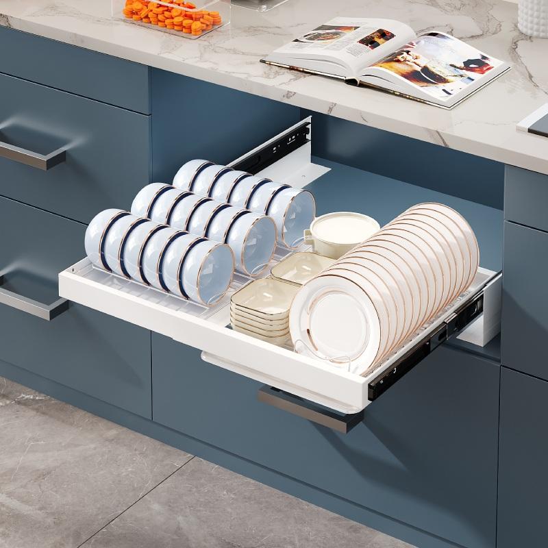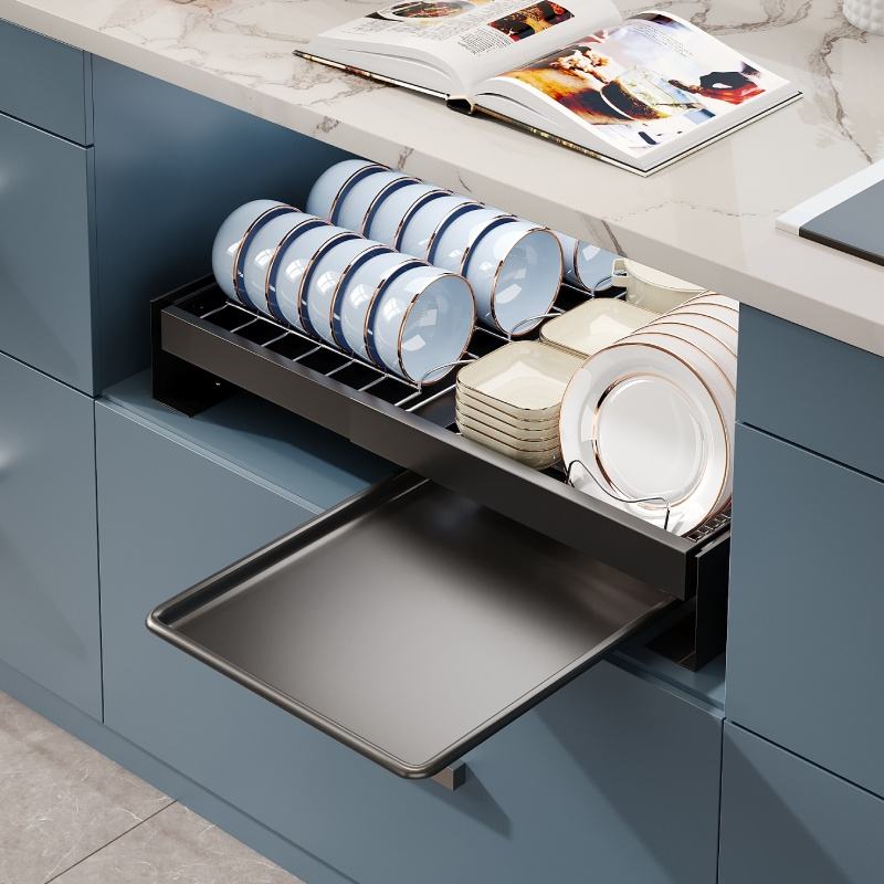 Organisateur de placard coulissant pour cuisine, avec égouttoir à vaisselle et à bols