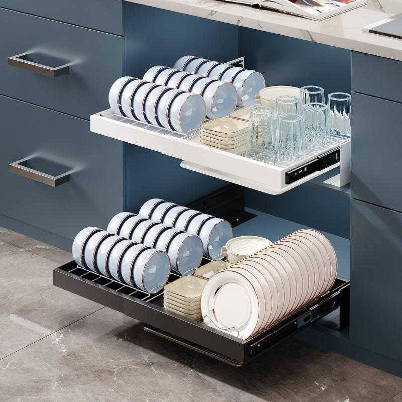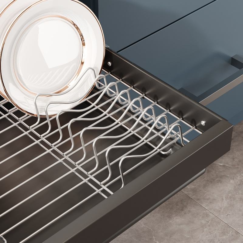 Description:Organisateur de placard coulissant pour cuisine, avec égouttoir à vaisselle et à bols