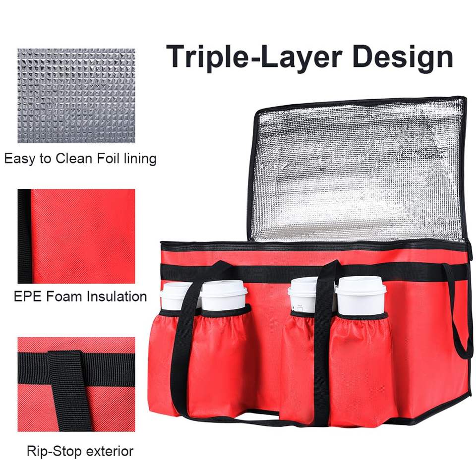 Sacs isothermes extensibles pour la livraison de pizzas à vélo, grand sac de livraison avec poches latérales, bande réfléchissante pour le camping et la plage