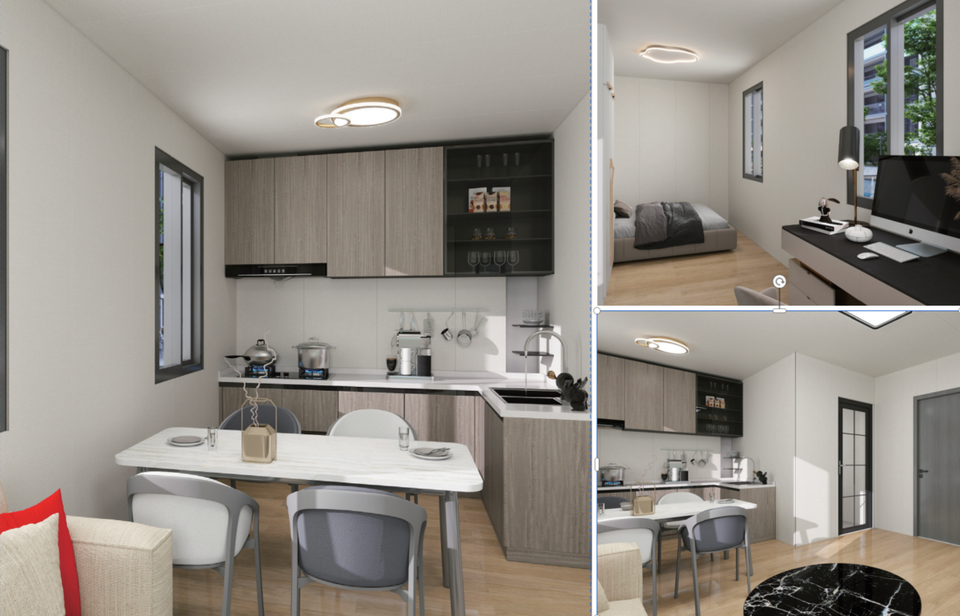 Boutique, Maison fabriquée en acier, CAFÉ SHOP, Hébergement, Librairies, Hôtel, Atelier, Cour, Chambre, Salle de bain, SalonApplication