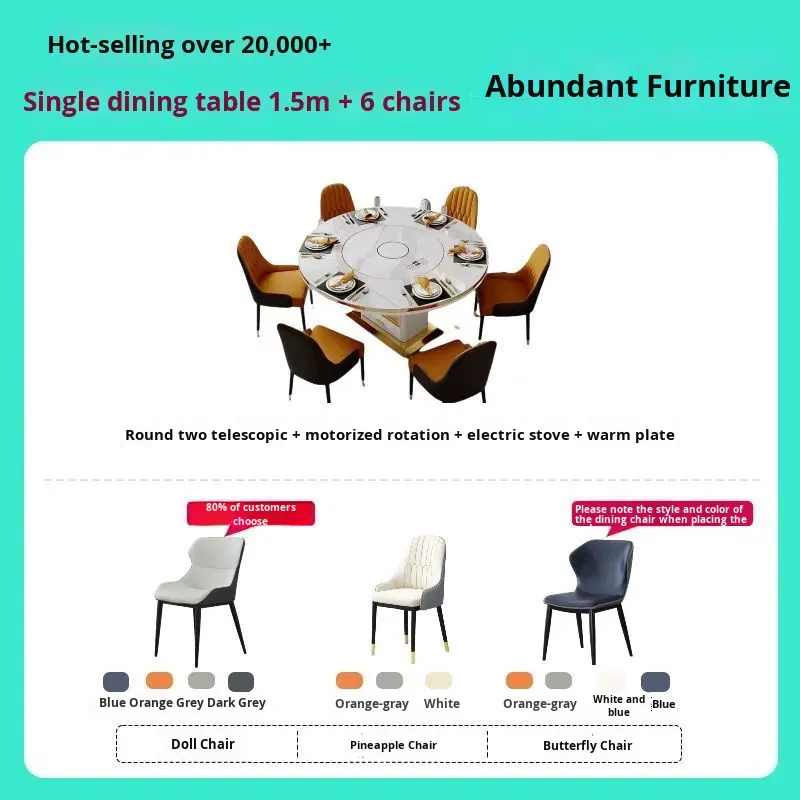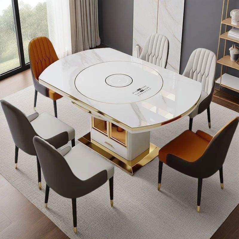 Table à manger ronde extensible avec table et chaise en dalle de pierre Table de cuisson à induction intégrée, plaque rotative pour usage domestique