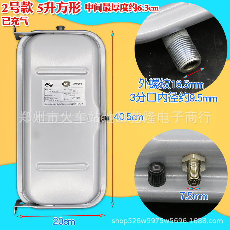 Réservoir d'expansion carré 5L 40,5 cm x 20 cm avec filetage de 16,5 mm pour accessoires de chauffe-eau