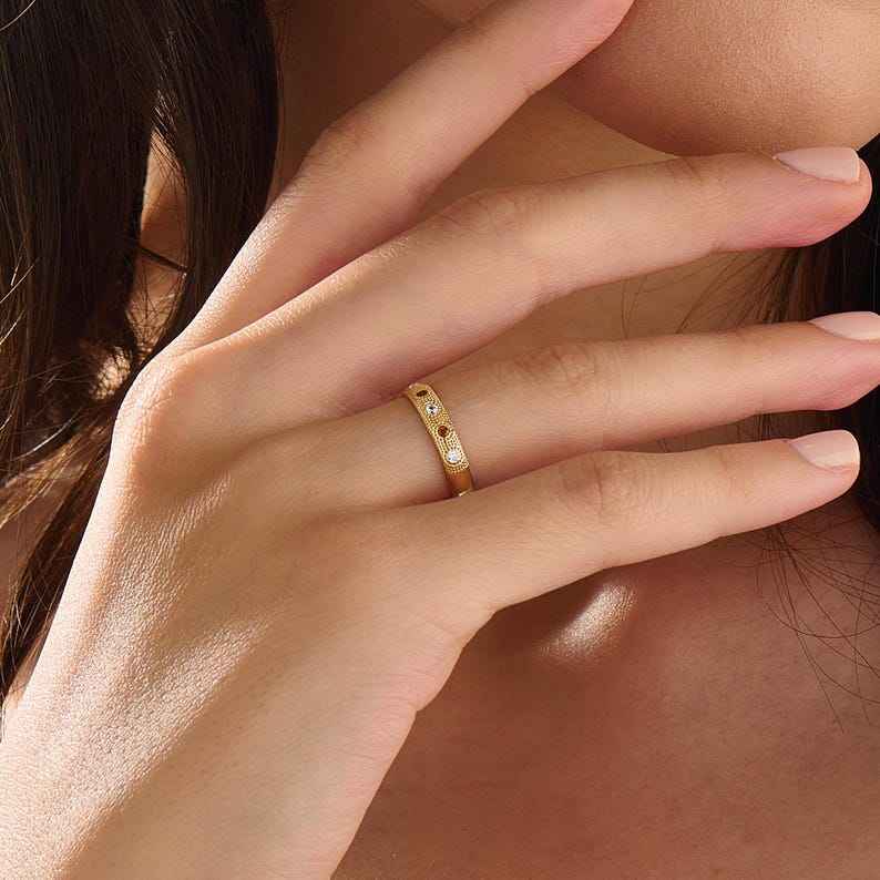 Customaized 14K or jaune bande de luxe Pierre de naissance bijoux personnalisés