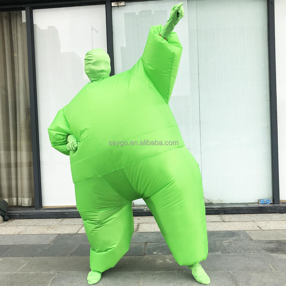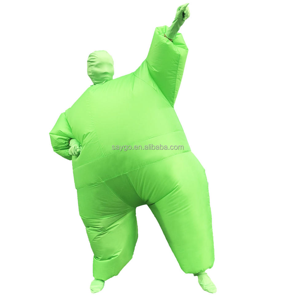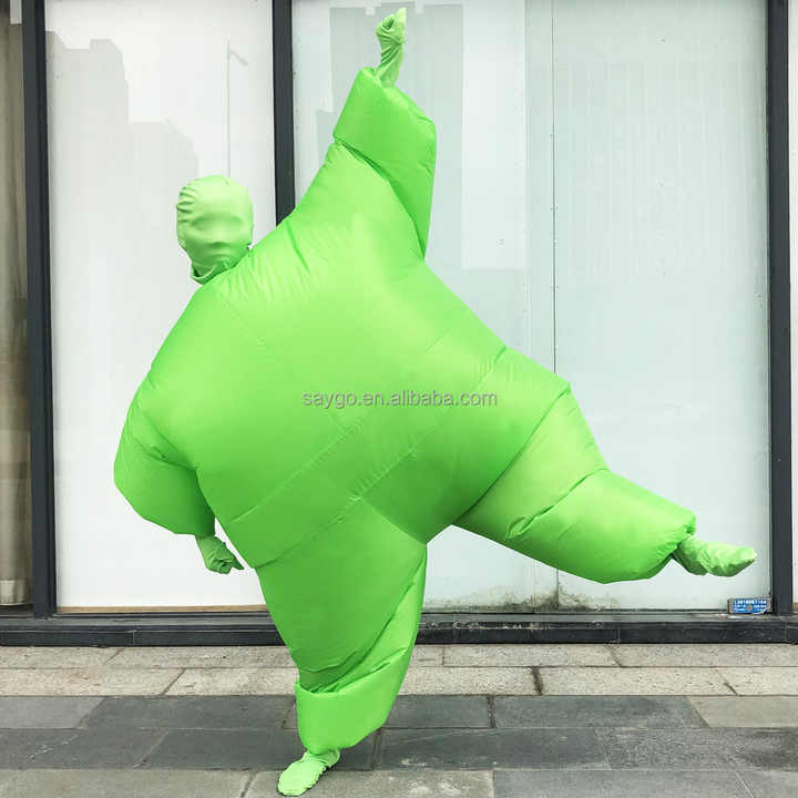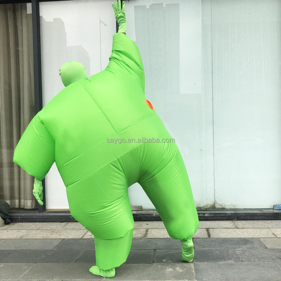 Costumes de mascotte de saumon de couleur verte expansive vêtements de sumo gonflables costumes de saumon de gros homme d'air pour la location d'événements de cosplay