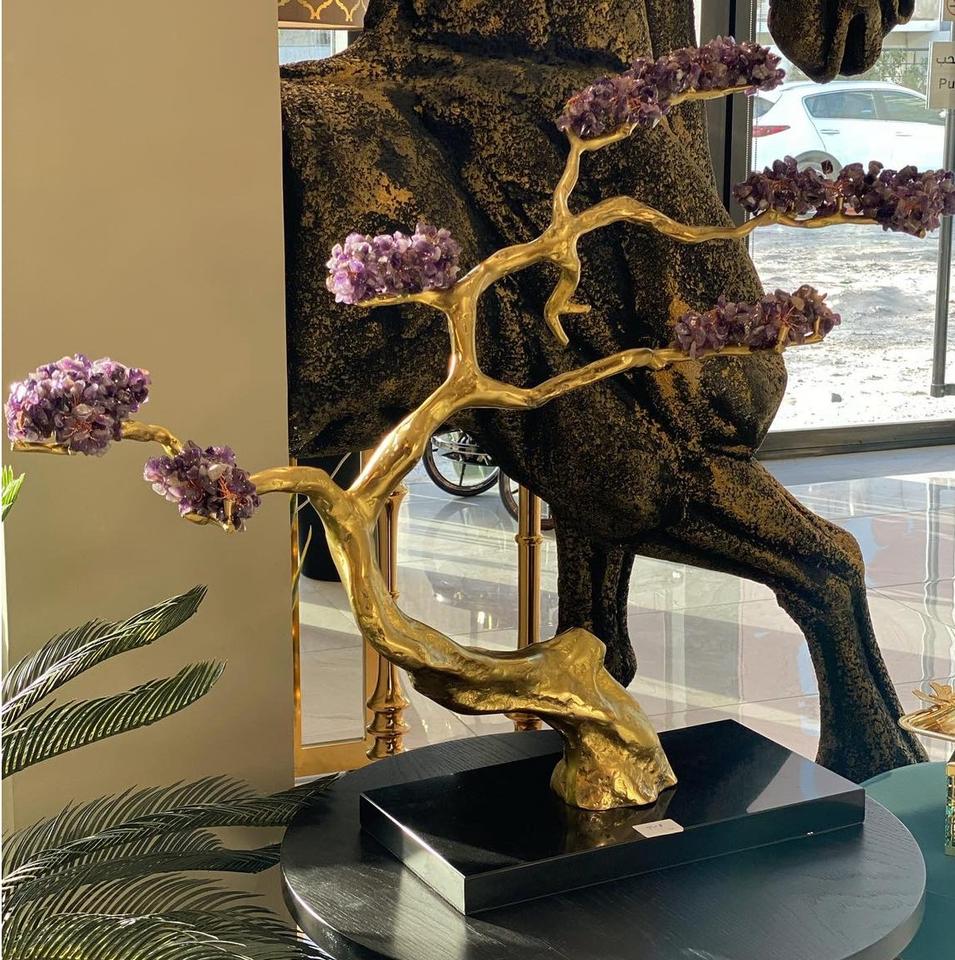 Sculpture d'arbre en aluminium coûteuse pour pièce maîtresse de table Sculpture en métal de finition en or brillant pour la décoration de la maison
