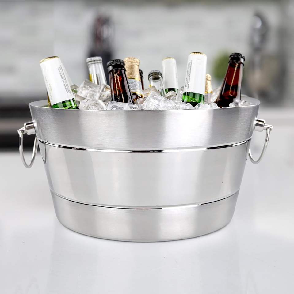 Cher Champagne Seau À Glace En Acier Inoxydable Argent Ovale Refroidisseur De Vin Avec Corde Poignée Bar Vin Fête De Mariage Refroidisseur De Bière