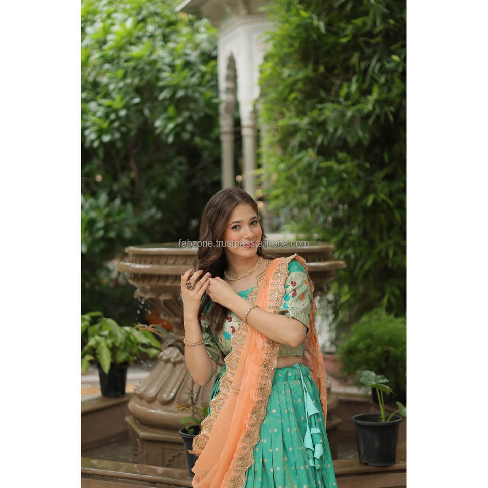 Experience the Allure of Trending Cosmos Jequard Lehenga Choli With Russian Silk Embroidered Dupatta. Discover the Perfect Fusio