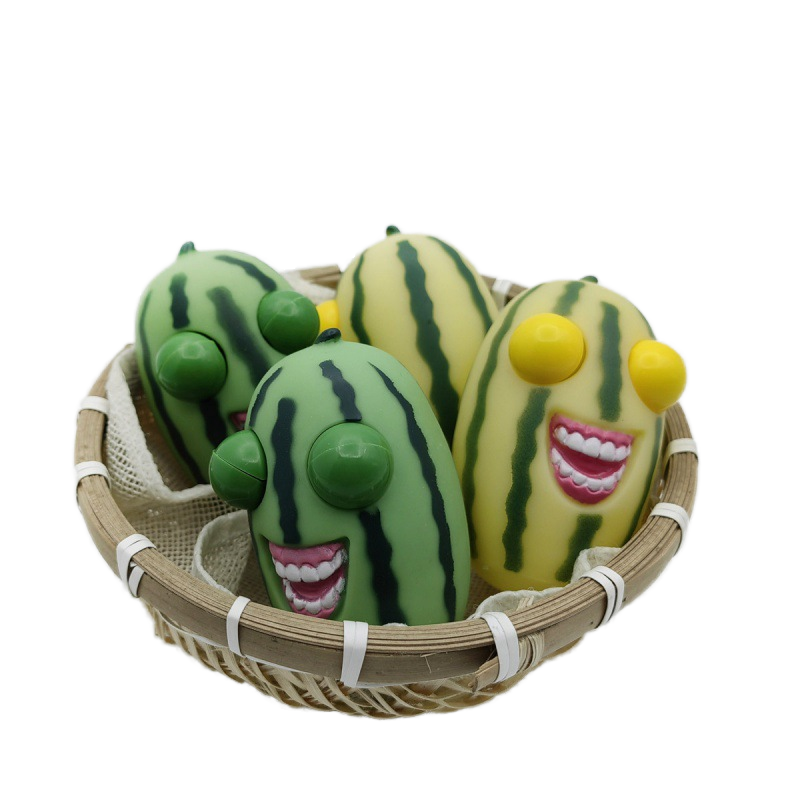 Exploding Eyed Watermelon Strip Squeeze Toy Fun Stress-Relieving Artifact with Squinting Staring Fruit Shaped Design