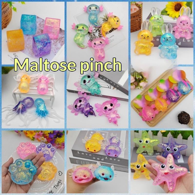 Jouet anti-stress à presser en forme d'animal, très populaire : Salamandre en maltose, Capybara, Patte de chat de dessin animé à paillettes