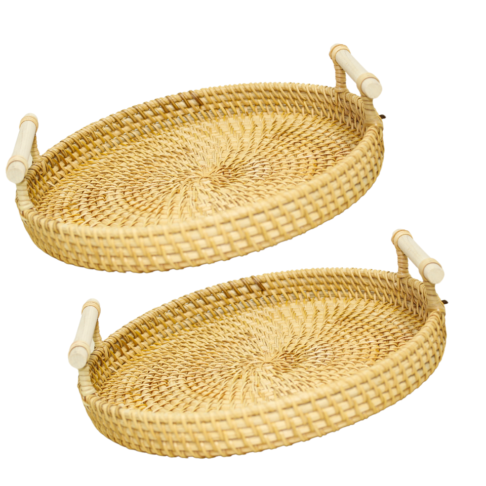 Explorez notre plateau en rotin fait à la main Un article de cuisine polyvalent pour le stockage et l'organisation des aliments Une tendance chaude pour une vie durable