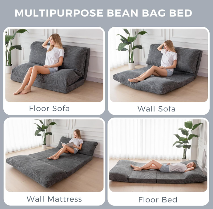 Canapé-lit en forme de L, pliable, extra épais, rembourrage en coton, durable, écologique, design moderne, housse lavable avec cordon
